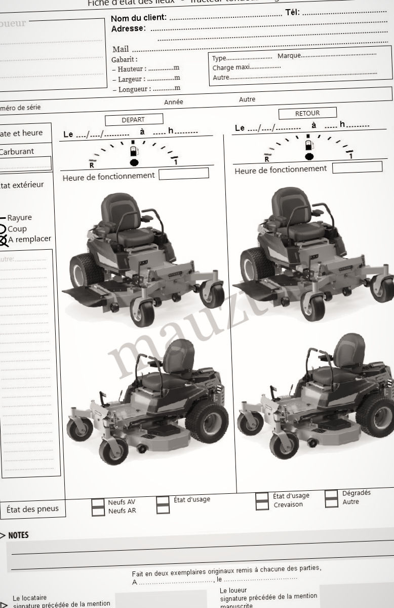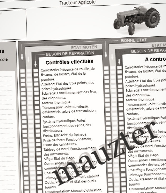 Fiche à remplir pour un état des lieux d'un tracteur agricole
