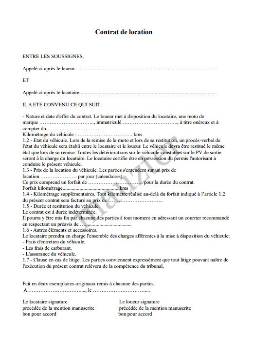 Location de quad fiche contrat état des lieux entre particulier et professionnel